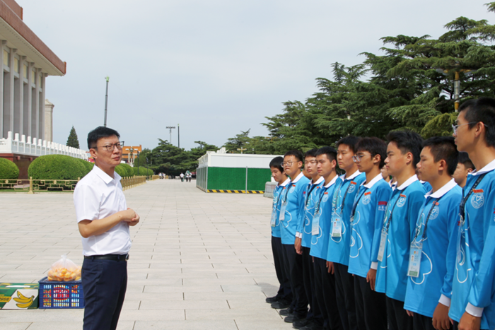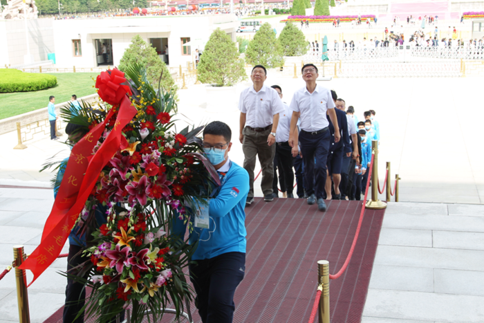 9月27日,北京化工集团副总经理李效军,党委常委、组织部部长刘士义;技师学院党委书记包英华一行专程来到毛主席纪念堂,看望慰问参加志愿服务的团员青年。