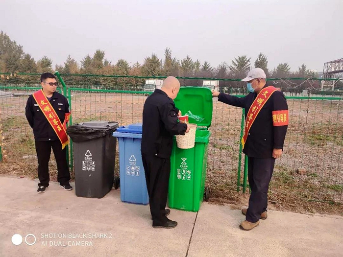 10月16日,华腾化工第二党支部(以下简称“第二党支部”)在大兴化工园区开展了“垃圾分类我能行,桶前值守我先行”主题党日活动,活动时间为期15天。活动旨在发挥党组织和党员的先锋模范作用,将“垃圾分类”融入中心工作,与园区生产、生活相结合。