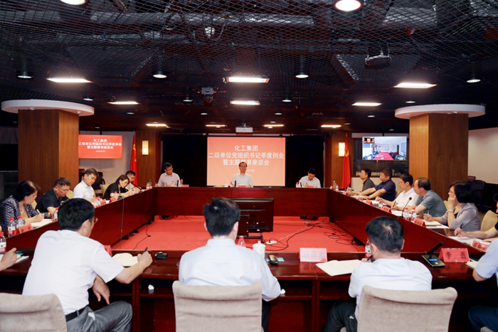 5月18日下午,北京化工集团党委召开二级单位党组织书记例会暨主题教育座谈会,党委书记、董事长王国华作总结讲话;党委副书记吴瑞峰主持会议。