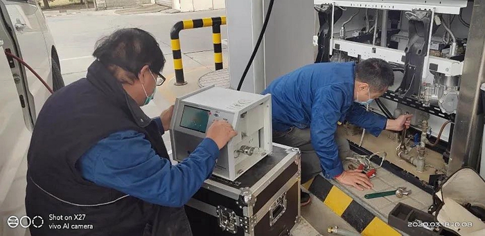 计量室承担着防雷检测、油气检测、计量检定的任务。他们的检测范围,既有化工装置区,也有园区办公楼,既有加油站点,又有人员密集的写字楼。每次执行任务前,工作人员都会提前跟被检测单位沟通联系,制定出详尽细致的操作计划。在确保防疫措施安全到位的前提下,克服各种困难,确保检测任务的完成。
